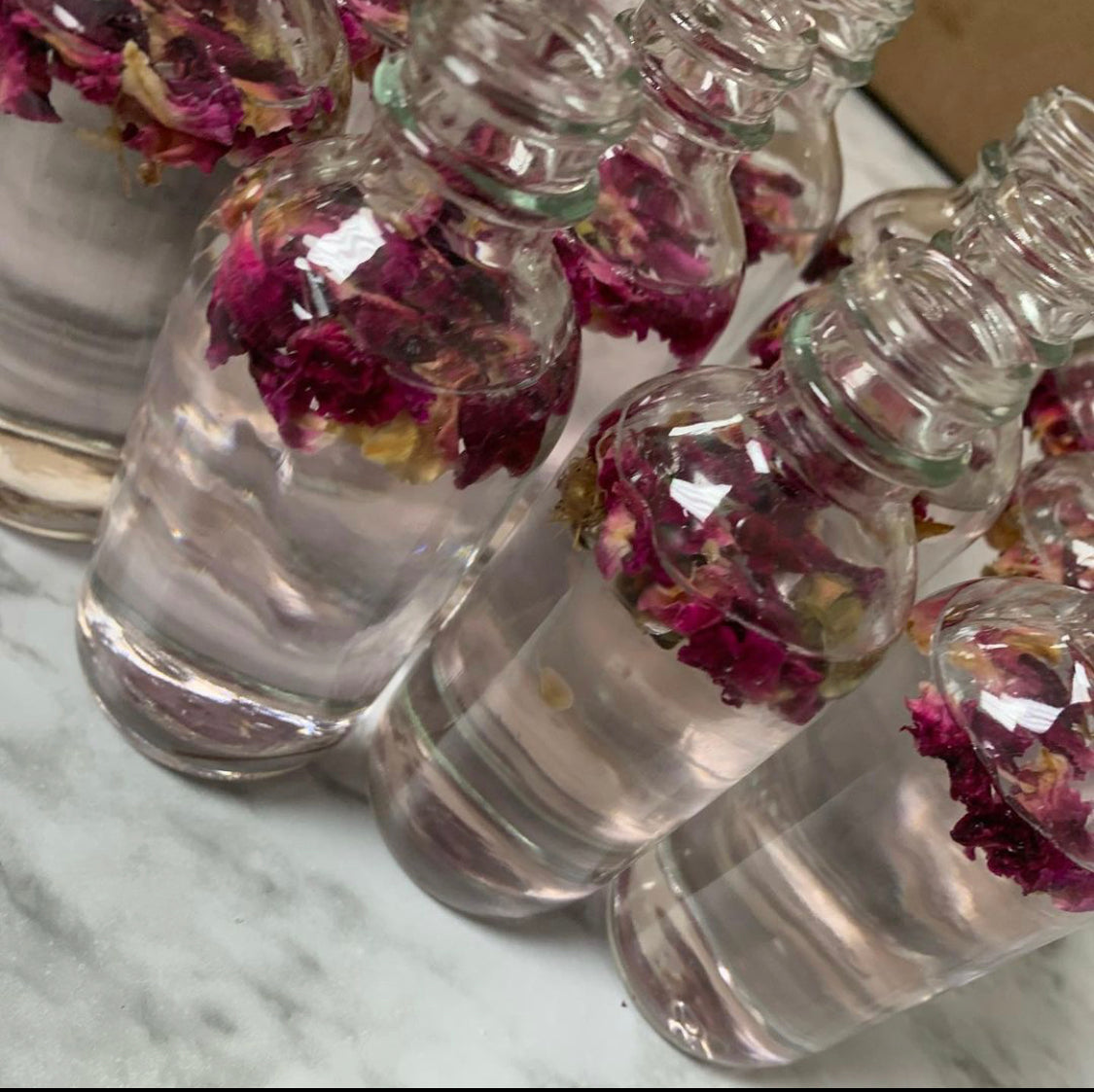 Rose water helps helps maintain the skins integrity and is a great cleanser for removing excess oil and dirt trapped in our clogged pores.